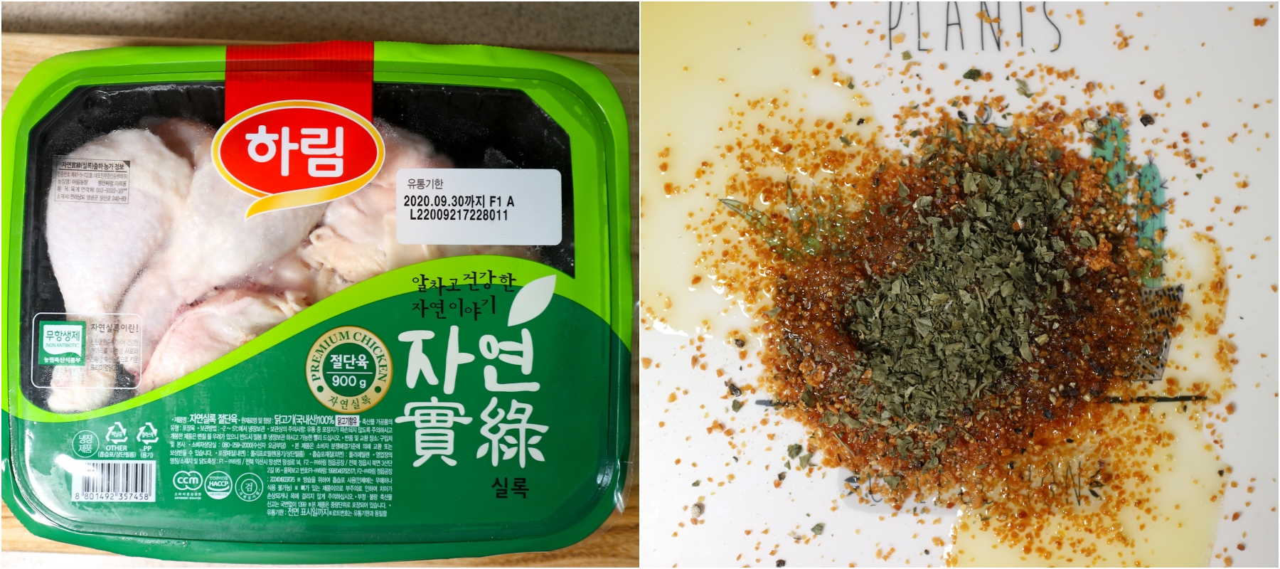 닭의 경우에는 마트에서 판매하는 900g 절단육을 사용했습니다. 사실 이 레시피는 유투브를 보고 따라한것인데요. 거기에서는 통닭을 사용했지만 손질하기도 귀찮고 절단육을 사용해서 해도 무방할것 같다는 생각을 했습니다.