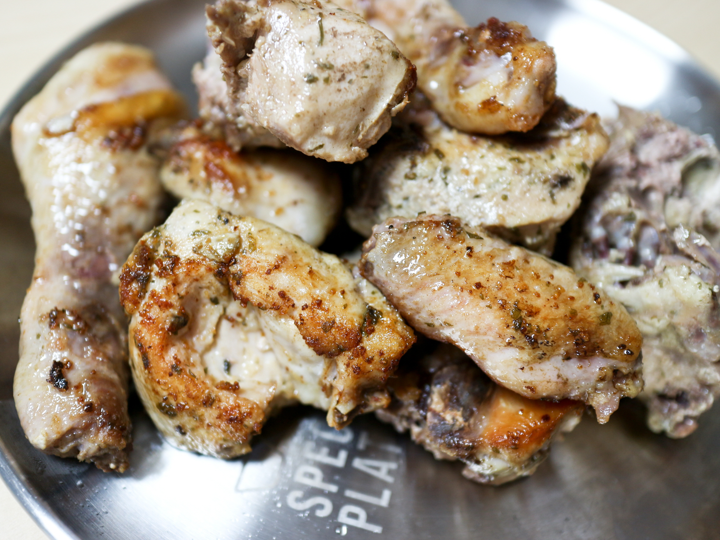 재료는 닭 900g, 마늘 가루 1.5 스푼, 소금 반 스푼, 후추 약간, 파슬리 가루 약간, 올리브오일 2스푼 을 첨가했습니다.