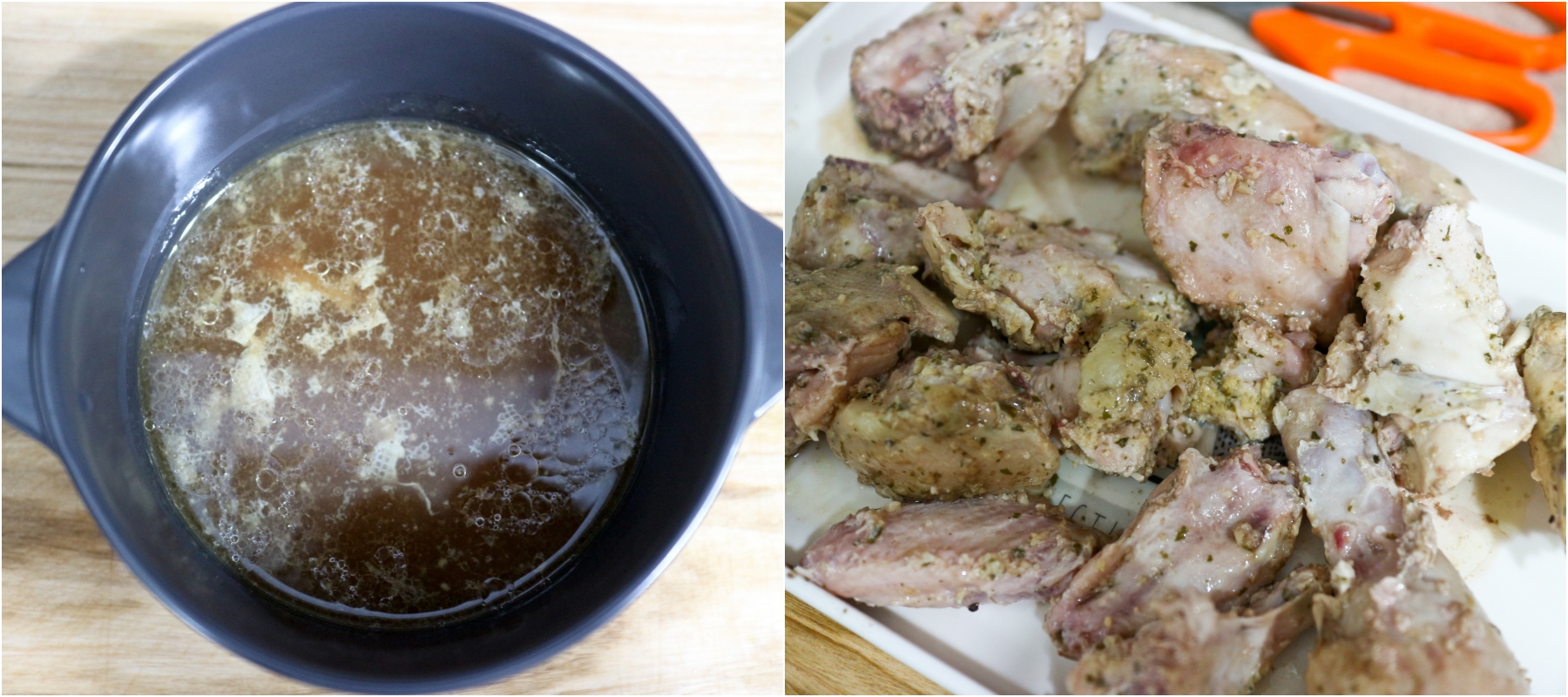 In the case of chickens, 900g of cut meat sold at the mart was used. Actually, I copied this recipe after watching YouTube. They used whole chicken, but it was annoying to clean it up, and I thought it would be okay to use cut meat.