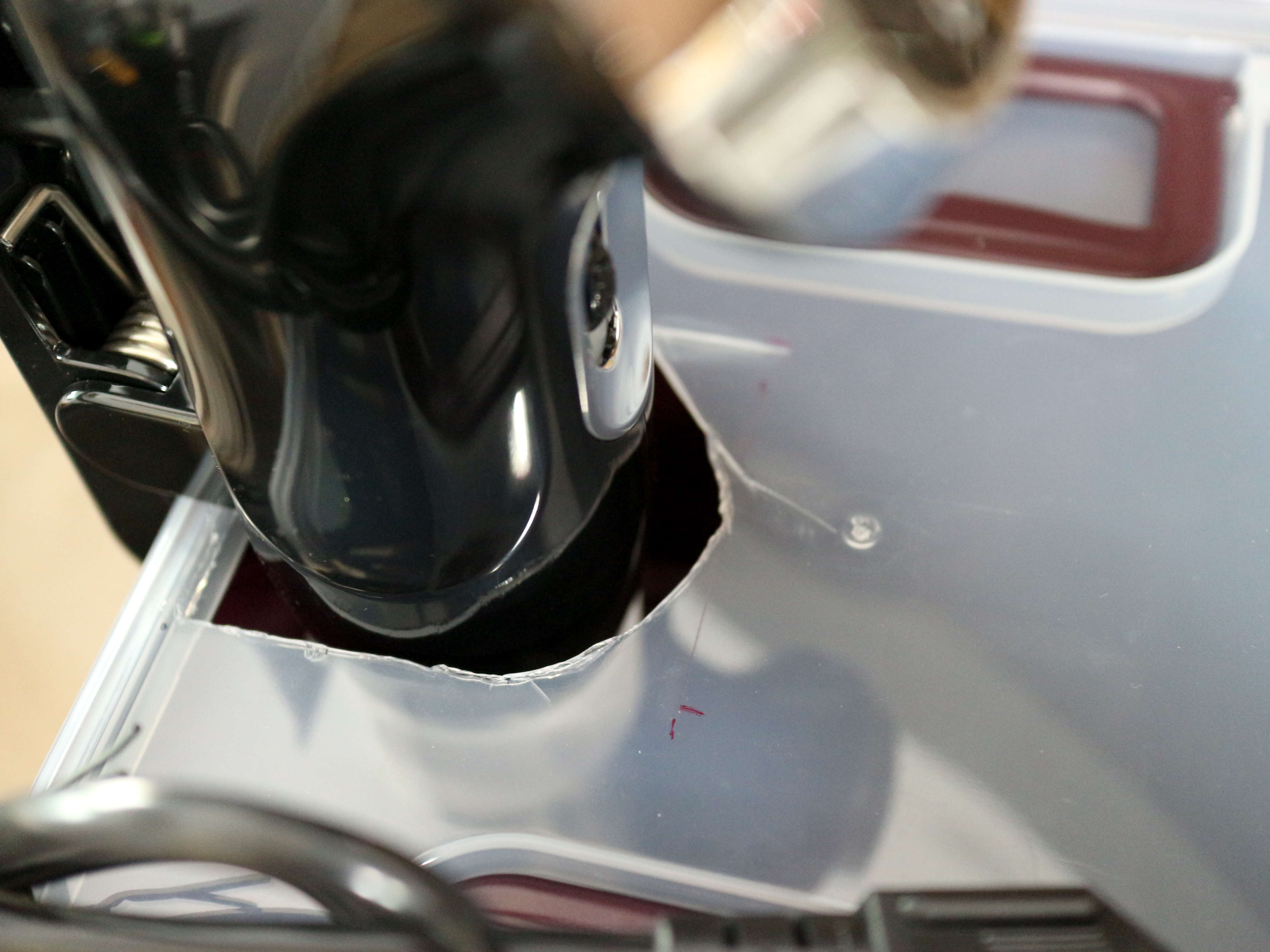 그래서 다이소에서 구입한 김치통 뚜껑을 뚫기로 마음을 먹고 바로 작업에 돌입합니다.