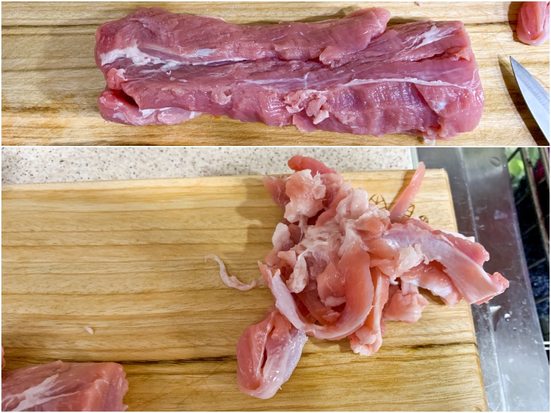 If you look at the picture above, the white fat and fascia on the surface of the pig's tenderloin are removed to some extent.