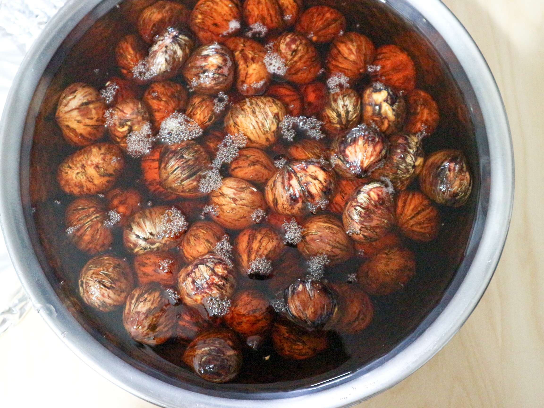 율피를 남겨 놓은 상태에서 밤을 다 까셨다면 밤이 다 잠길정도로 물을 넣고 거기에 베이킹 소다를 넣어주세요.