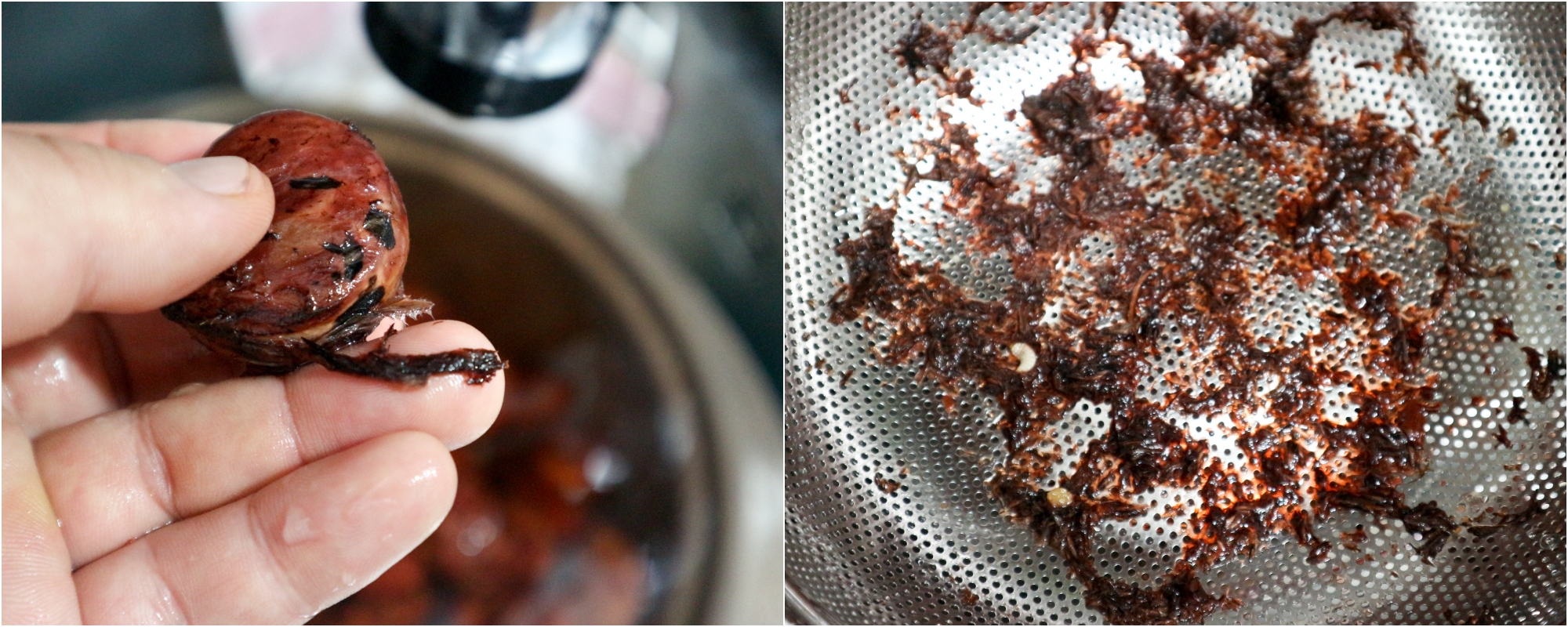 한번 삶아낸 물을 버리시면서 같이 제거가 된 찌꺼기들도 역시 같이 버려줍니다.