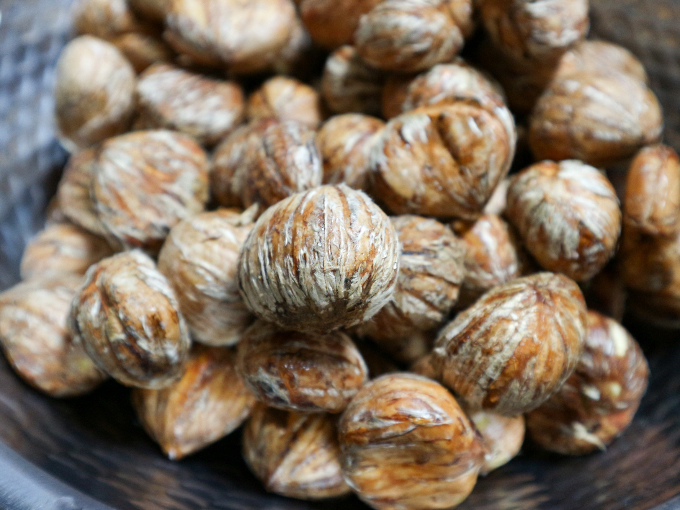 율피를 벗겨내며 밤 사이사이에 있는 심지가 보입니다.