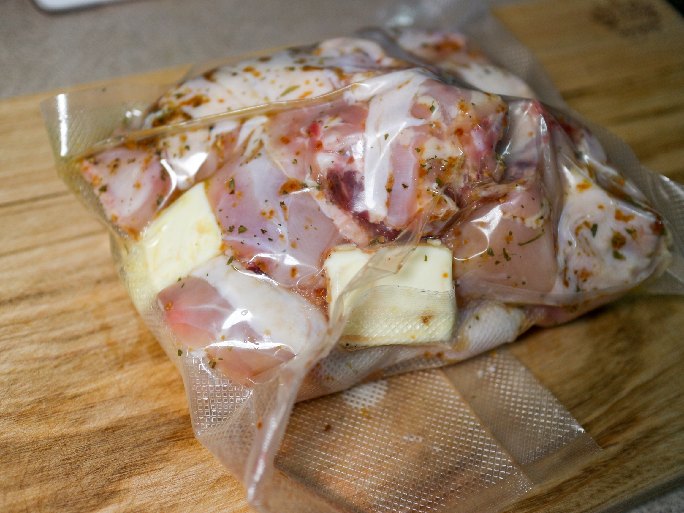 Then, when you vacuum-pack, you vacuum-pack it with two pieces of butter.