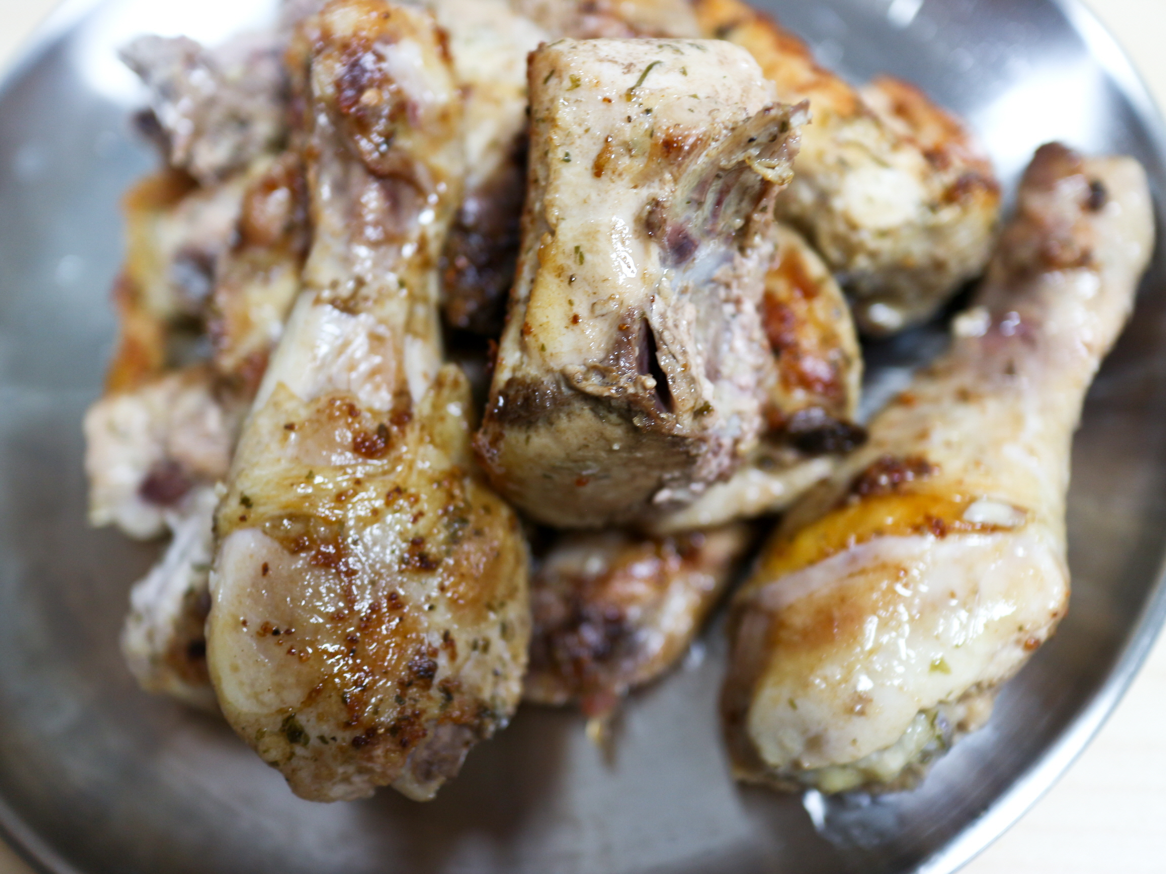 재료는 닭 900g, 마늘 가루 1.5 스푼, 소금 반 스푼, 후추 약간, 파슬리 가루 약간, 올리브오일 2스푼 을 첨가했습니다.