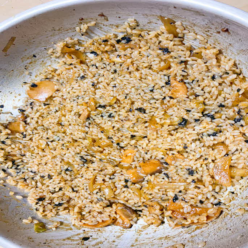 일반 코팅 팬이나 코팅된 냄비에서는 생생도 못할 눌은 볶음밥이죠. 그래서 저는 코팅 팬을 전혀 사용하지 않습니다.