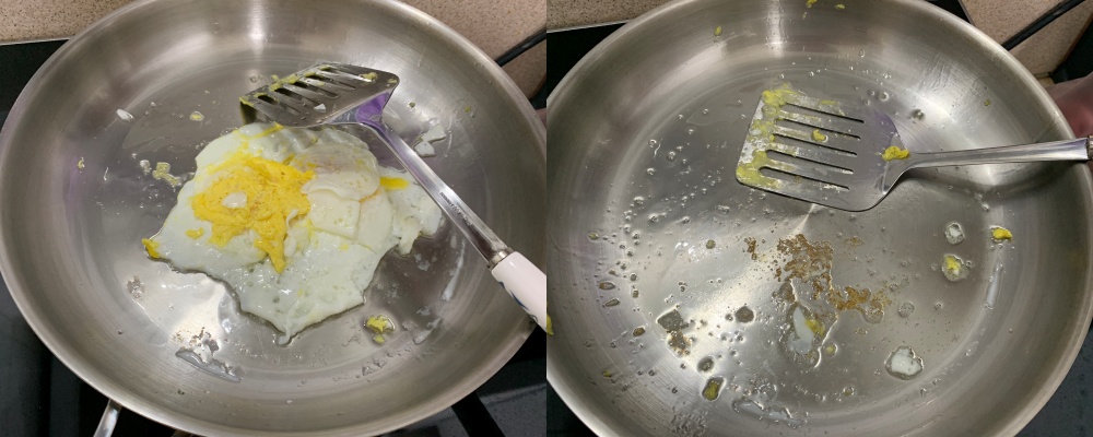 The video above shows that the fried egg hardly sticks to the stanpan.