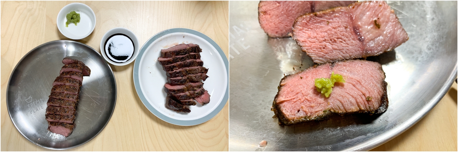 As usual, my family uses raw wasabi and Costco glaze balsamic sauce to eat steak.