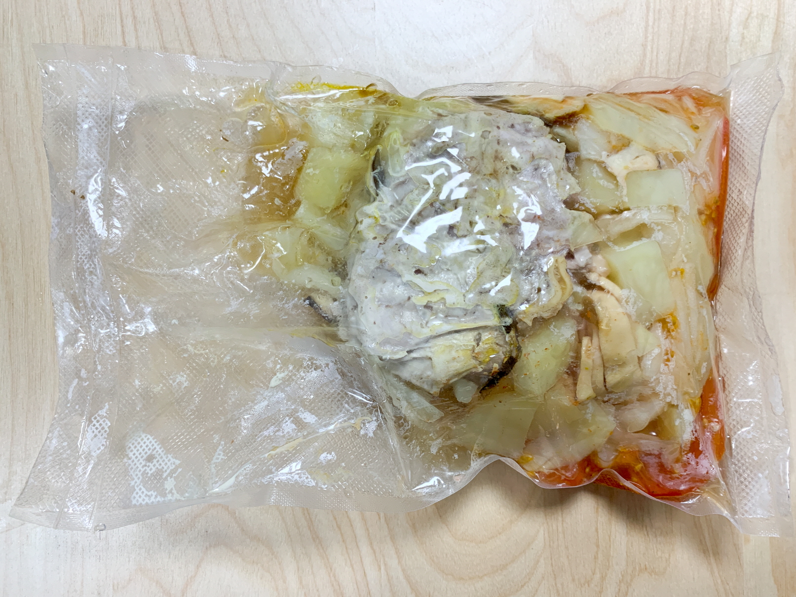 재료를 섞어주는 작업을 진행할때 고형카레를 사용한것을 약간 후회했습니다. 뜨거운 재료가 담긴 진공포장백을 섞어주는것이 생각보다 쉽지많은 않았기 때문이죠.