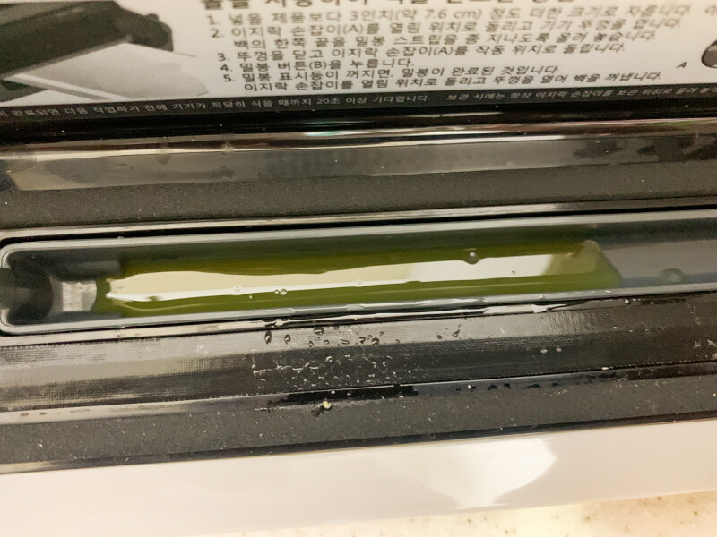 제가 가지고 있는 코스트코 진공포장기는 오일의 이탈을 최소화해주고 이탈된 오일은 설거지를 쉽게 할 수 있도록 모아주는 부분도 있습니다.