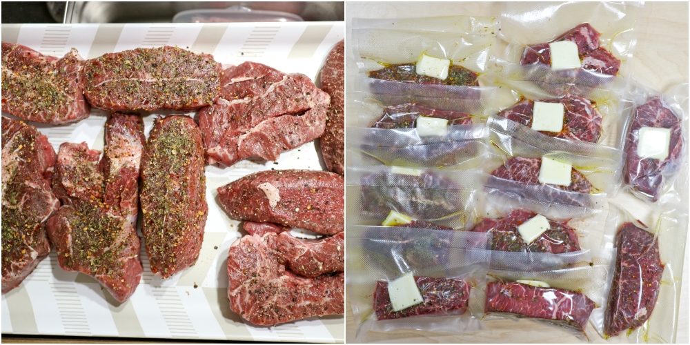 For your information, I vacuum wrapped it with salt, pepper, basil, seasoning powder, olive oil, and butter.