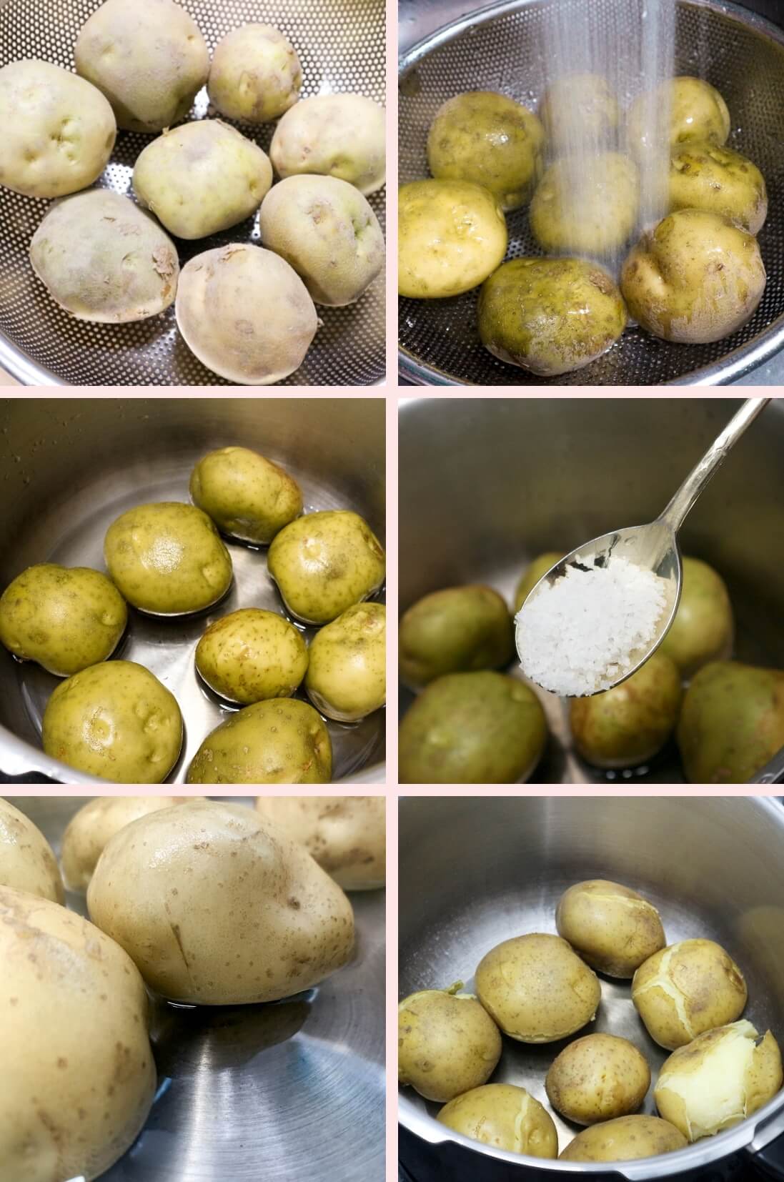 - 감자가 잘 삶아지면 사진처럼 껍질이 갈라지게 됩니다.