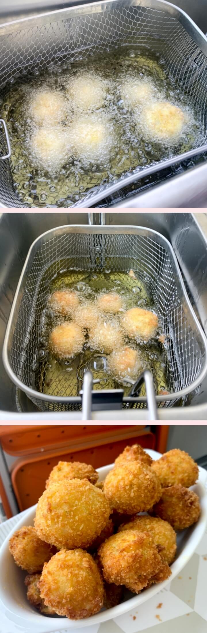 - 델키 튀김기 또는 냄비 등에 170도 이상의 온도의 기름에 넣어 노릇하게 튀겨지면 완성입니다.